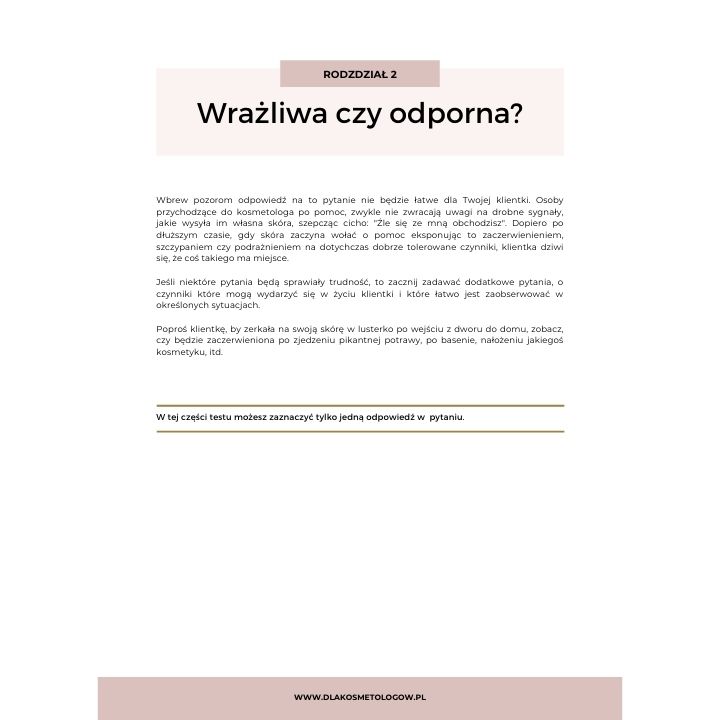 Poznaj szablon pytań, który stworzyłam na bazie wiedzy, zdobywanej latami z wszelakich źródeł naukowych i własnego doświadczenia, aby udostępnić narzędzie do pracy dla każdego Kosmetologa. Przejdź przez każde pytanie i rozdział po kolei.